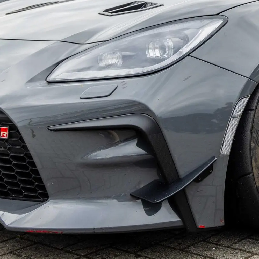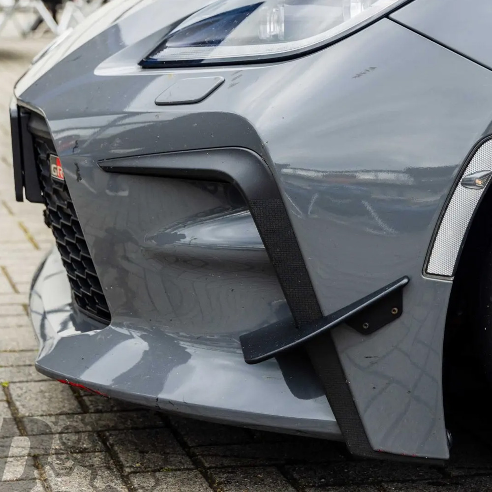 Diese Canards für deinen Toyota GR86 sind keine optische Spielerei sondern aerodynamische Anbauteile, die hauptsächlich im Motorsport eingesetzt werden. Diese flügelartigen Elemente wurden fahrzeugspezifisch für den GR86 entwickelt un werden an der Frontstoßstange deines Toyota GR86 montiert. Ihr Hauptzweck besteht darin, den Abtrieb (Downforce) zu erhöhen, um die Bodenhaftung bei hohen Geschwindigkeiten zu verbessern.